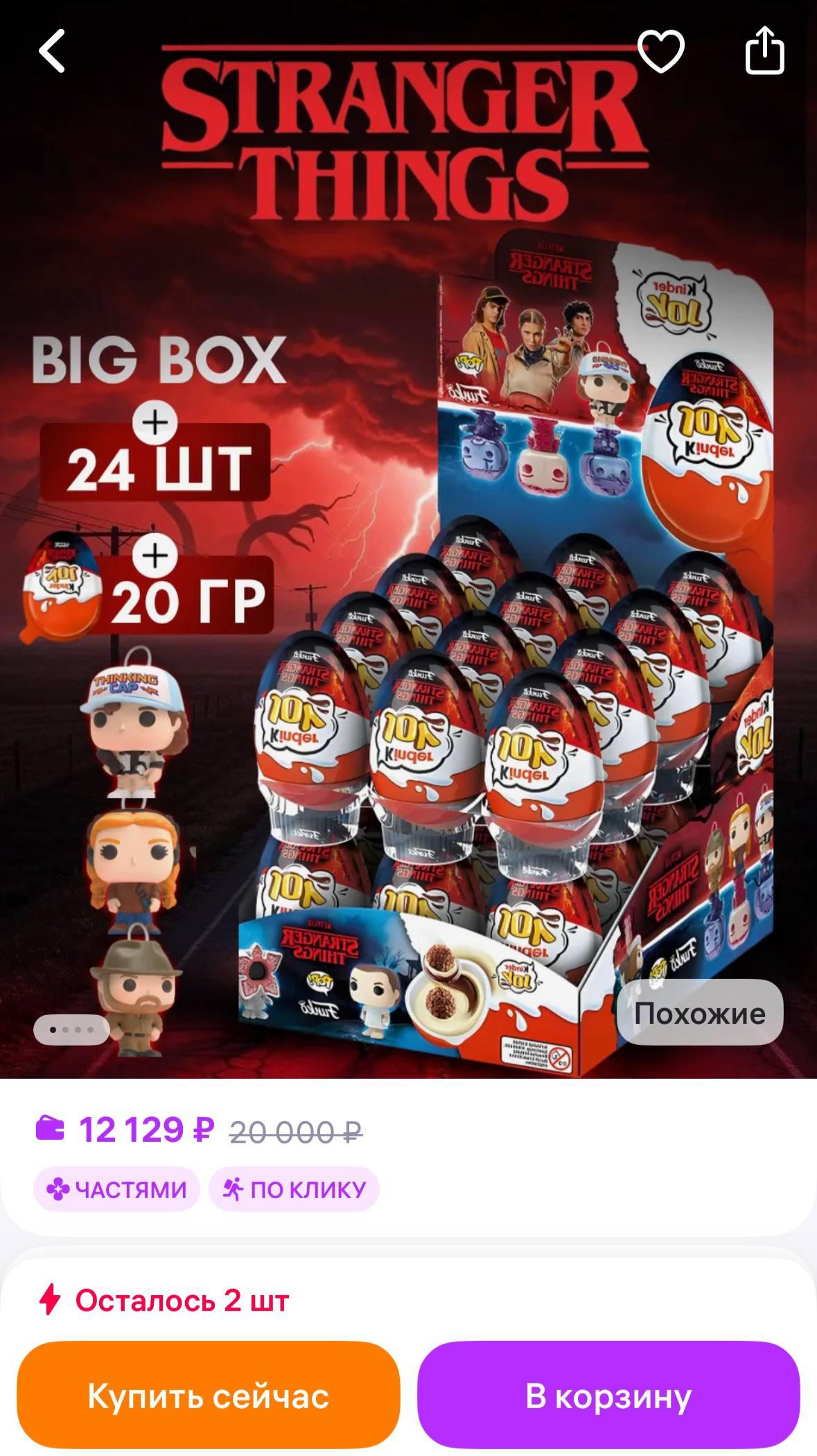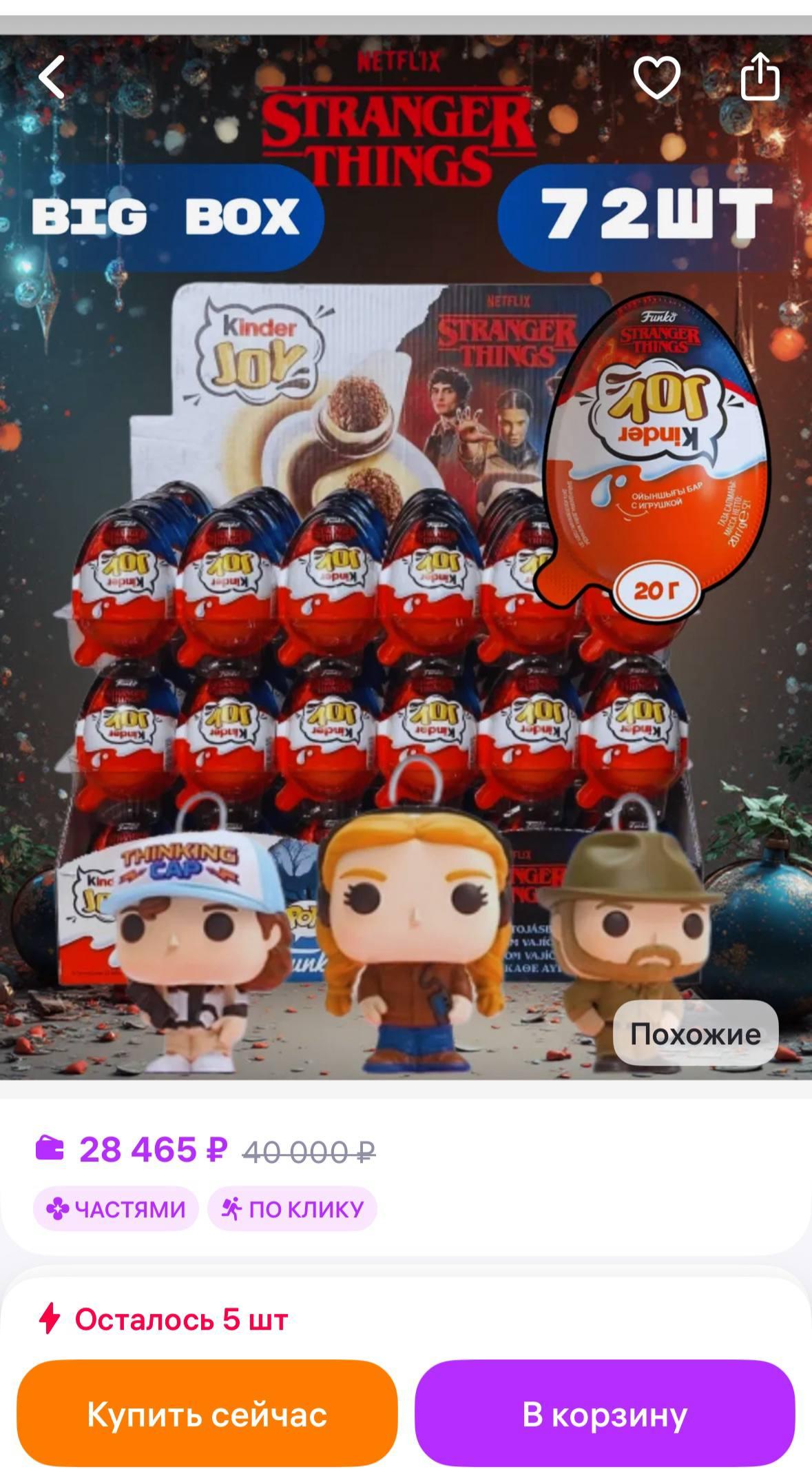 На маркетплейсах можно приобрести целые наборы яиц, чтобы собрать всю команду из Хокинса сразу. Цены на такие наборы начинаются примерно от 7 тысяч рублей и доходят до 28 тысяч рублей за полную серию.