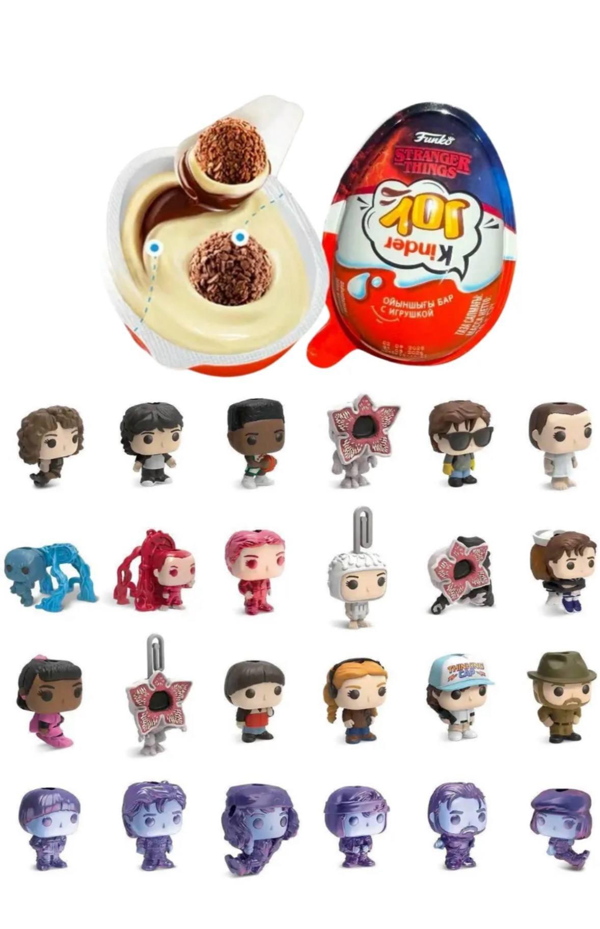 Коллекция включает 24 игрушки. Самым желанным персонажем является Уилл, также есть фигурки так называемых «изнаночных» героев. Особенность коллекции в том, что на каждой фигурке скрыты буквы, которые вместе складываются в название сериала на английском — STRANGER THINGS. Чтобы увидеть эту надпись, нужно собрать 14 ключевых фигурок, расположить их в определённом порядке и подсветить ультрафиолетом.