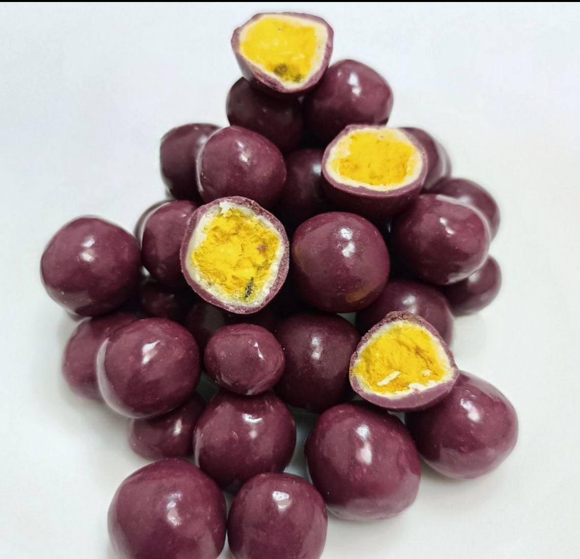 Изображение маракуйи в глазури из йогуртового шоколада.