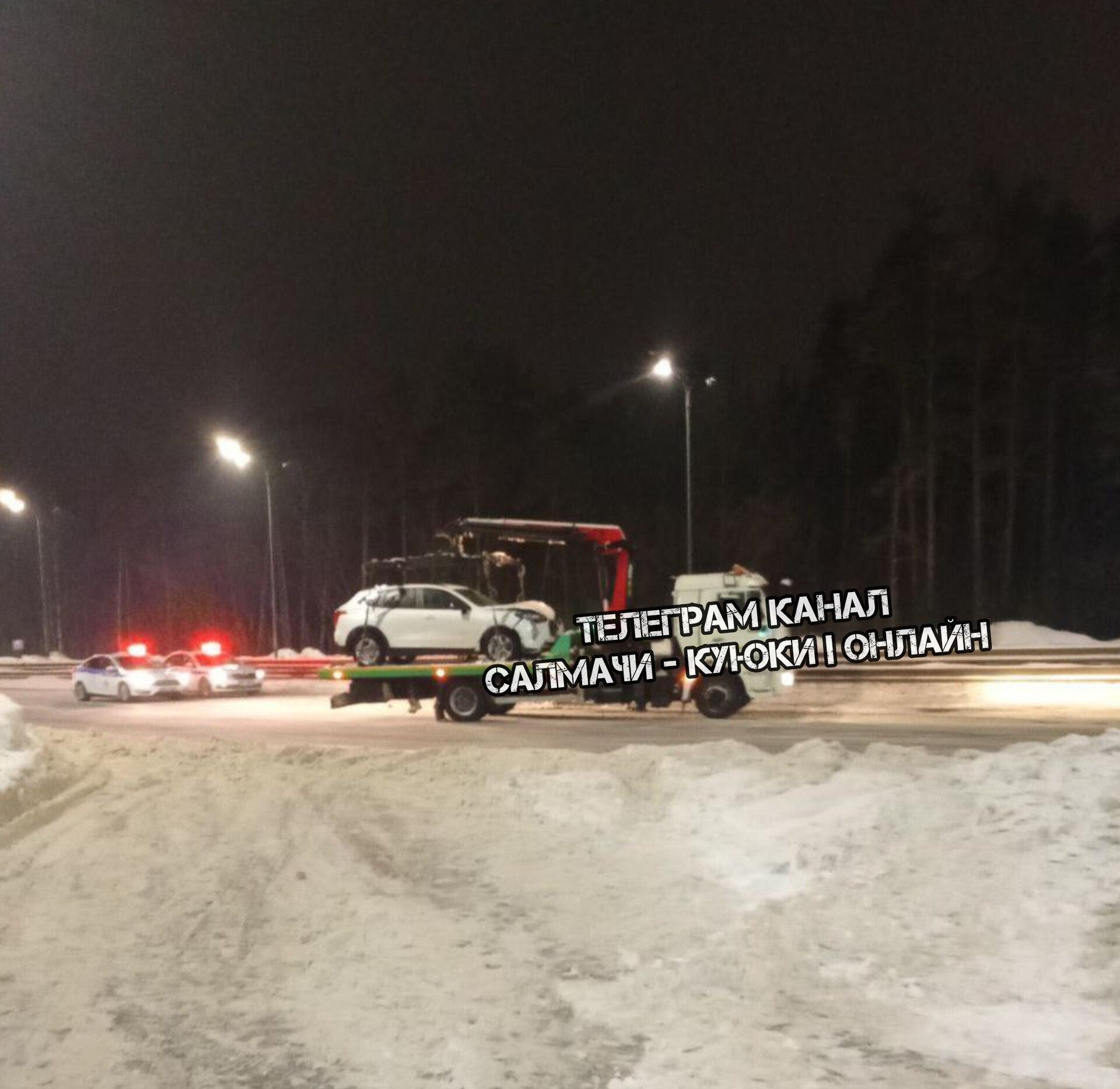 Угнанный подростками автомобиль Haval Jolion после столкновения с отбойником на Горьковском шоссе в Казани.