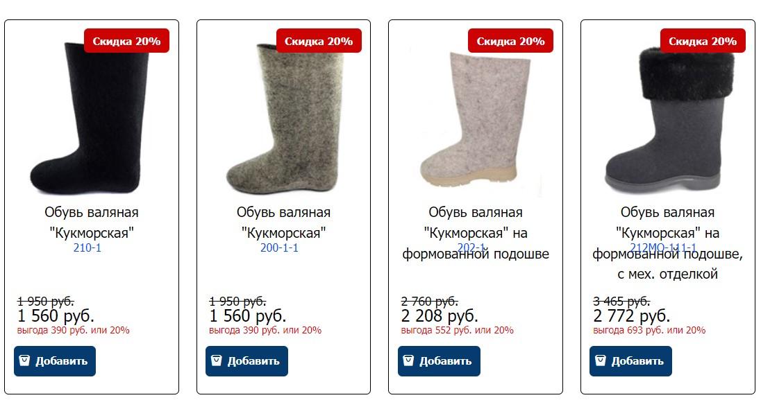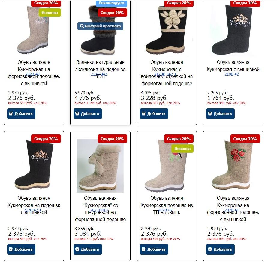 По данным сайта предприятия, цена на самые простые модели валенок без подошвы и вышивки начинается от 1560 рублей. Модели сложнее оцениваются в 2–4 тысячи рублей.