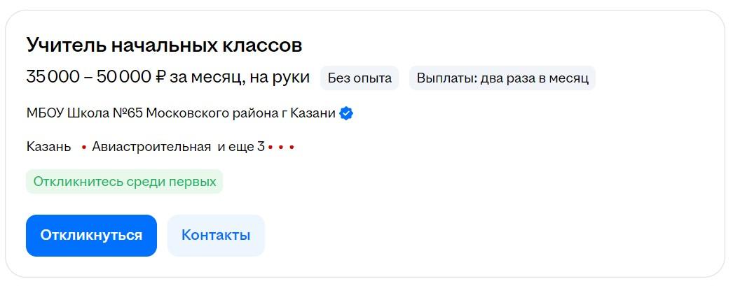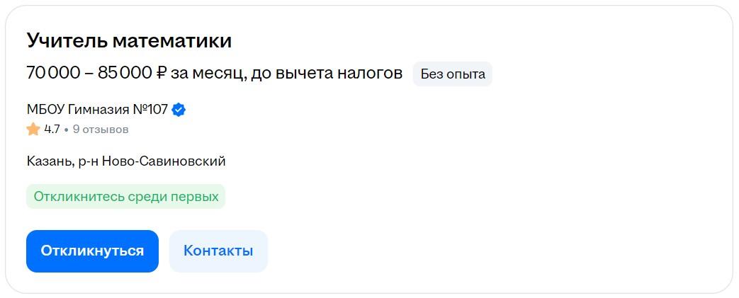 Анализ вакансий на сайтах по поиску работы показывает высокий спрос на учителей в Казани. Чаще всего ищут преподавателей английского языка, математики и физики. Также открыты вакансии для учителей технологии, музыки, биологии, русского языка и литературы, химии, истории и обществознания, начальных классов и школьных психологов.