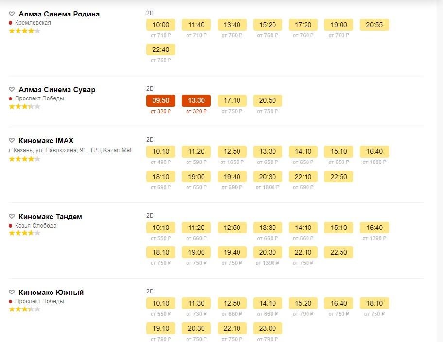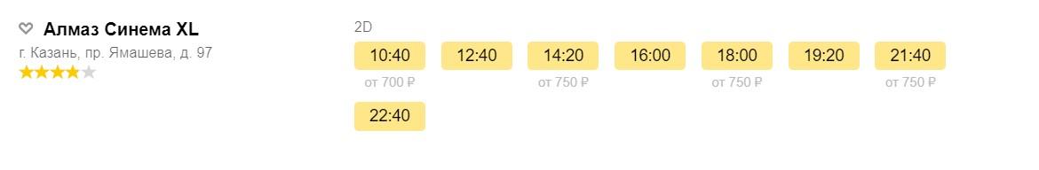 Стоимость билетов начинается от 320 рублей и может достигать 1800 рублей. Традиционно утренние и дневные сеансы дешевле вечерних.
