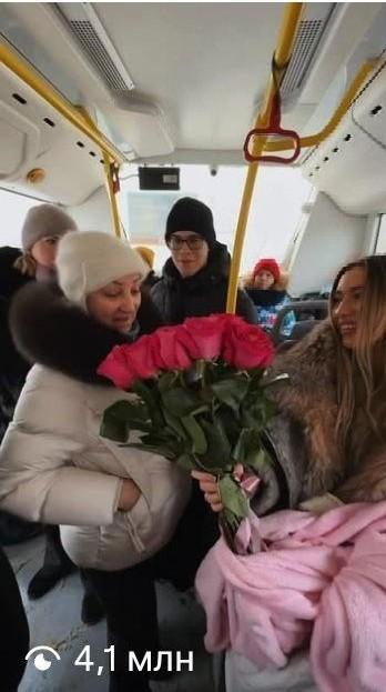 Блогер из Татарстана удивила пассажирку букетом в автобусе