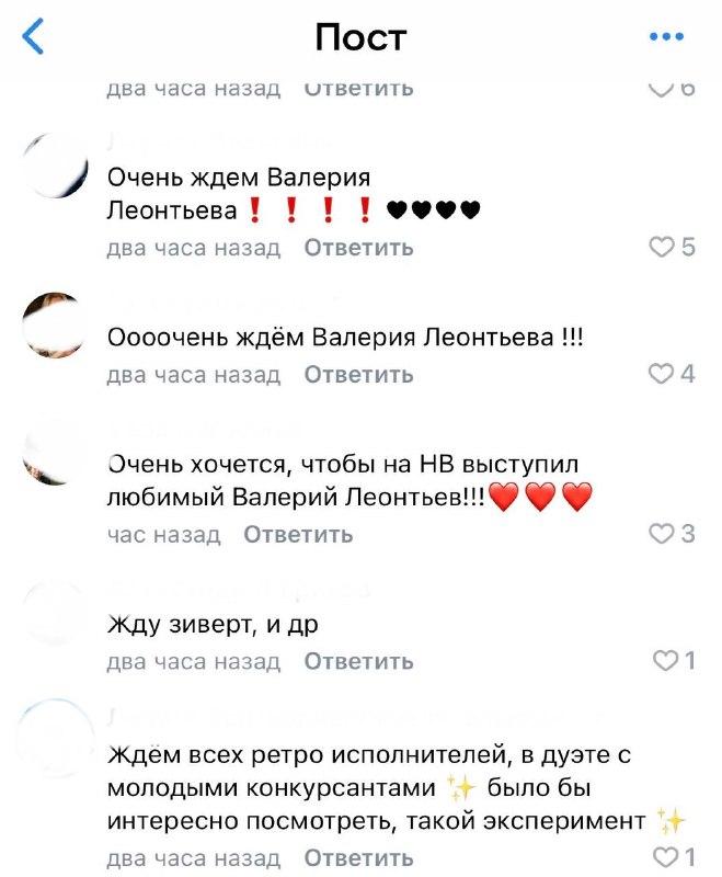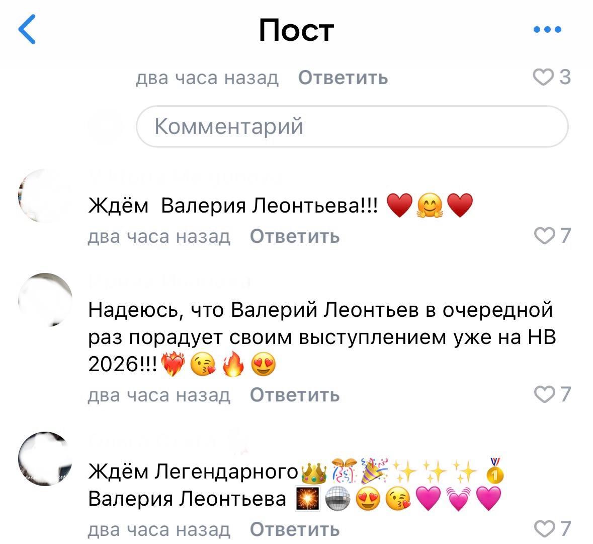 «Надеюсь, что Валерий Леонтьев в очередной раз порадует своим выступлением уже на „Новой волне“ 2026», — написала одна из пользовательниц.