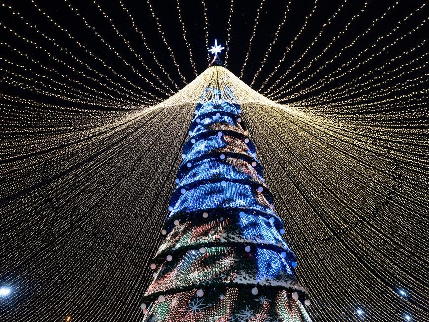 35-метровую конструкцию начали монтировать еще в конце ноября, до выпадения снега. Процесс установки проходил в две стадии, а сама елка была торжественно зажжена 23 декабря.