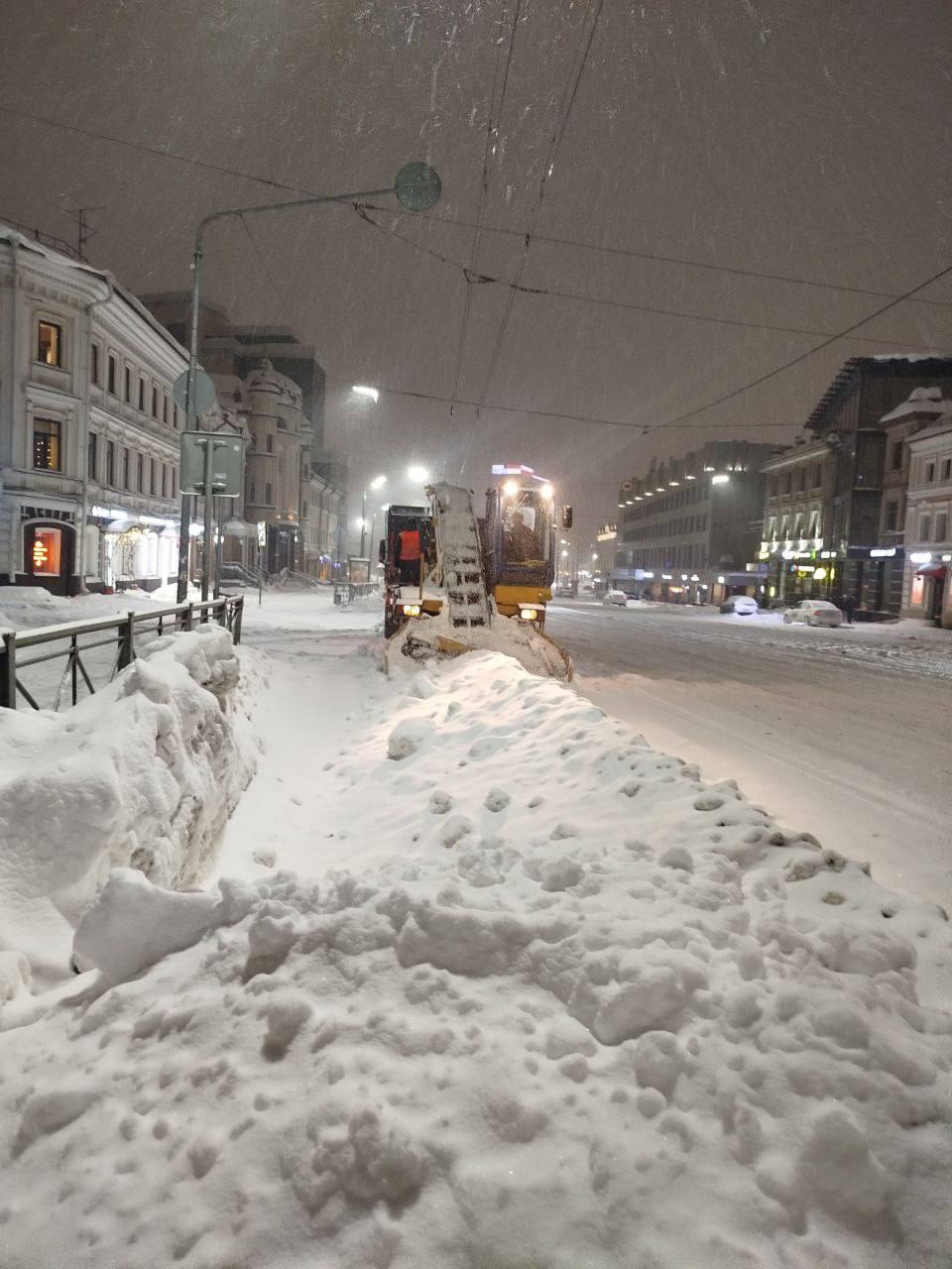 По данным мэрии Казани, ночь на 30 января стала самой интенсивной по количеству осадков за последние дни. Городские службы работали всю ночь, и уборка снега продолжается.