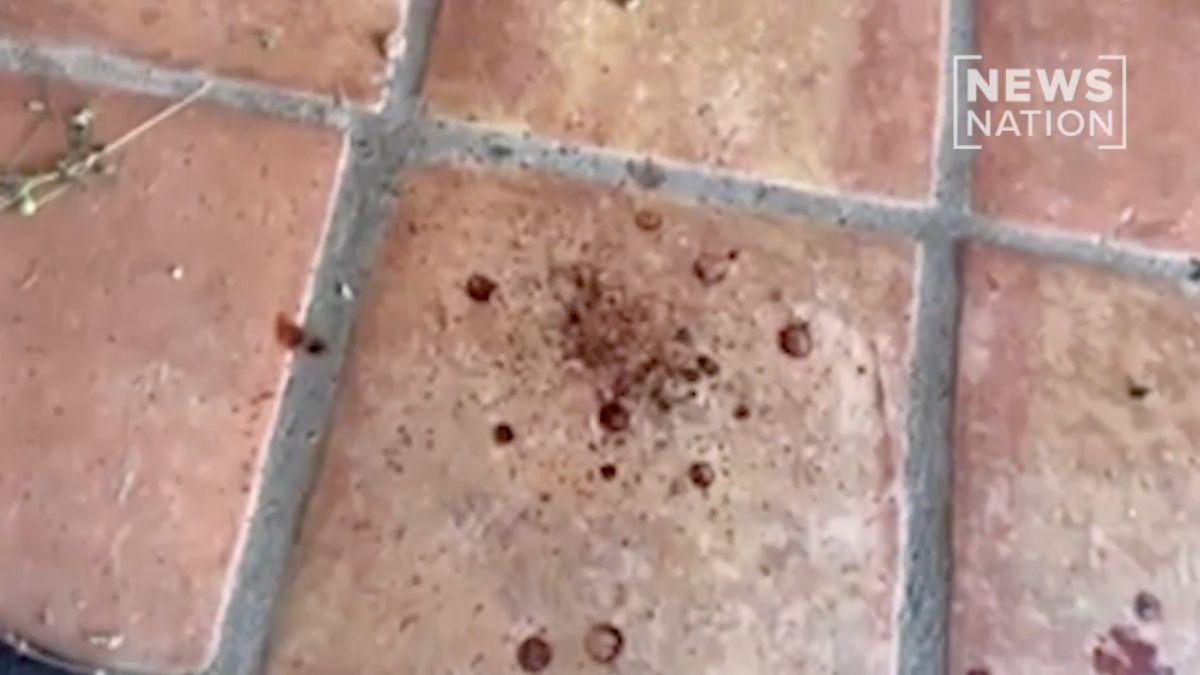 Репортер Брайан Энтин заснял пятна крови на пороге дома Нэнси Гатри после того, как полиция сняла ограждение с места преступления.