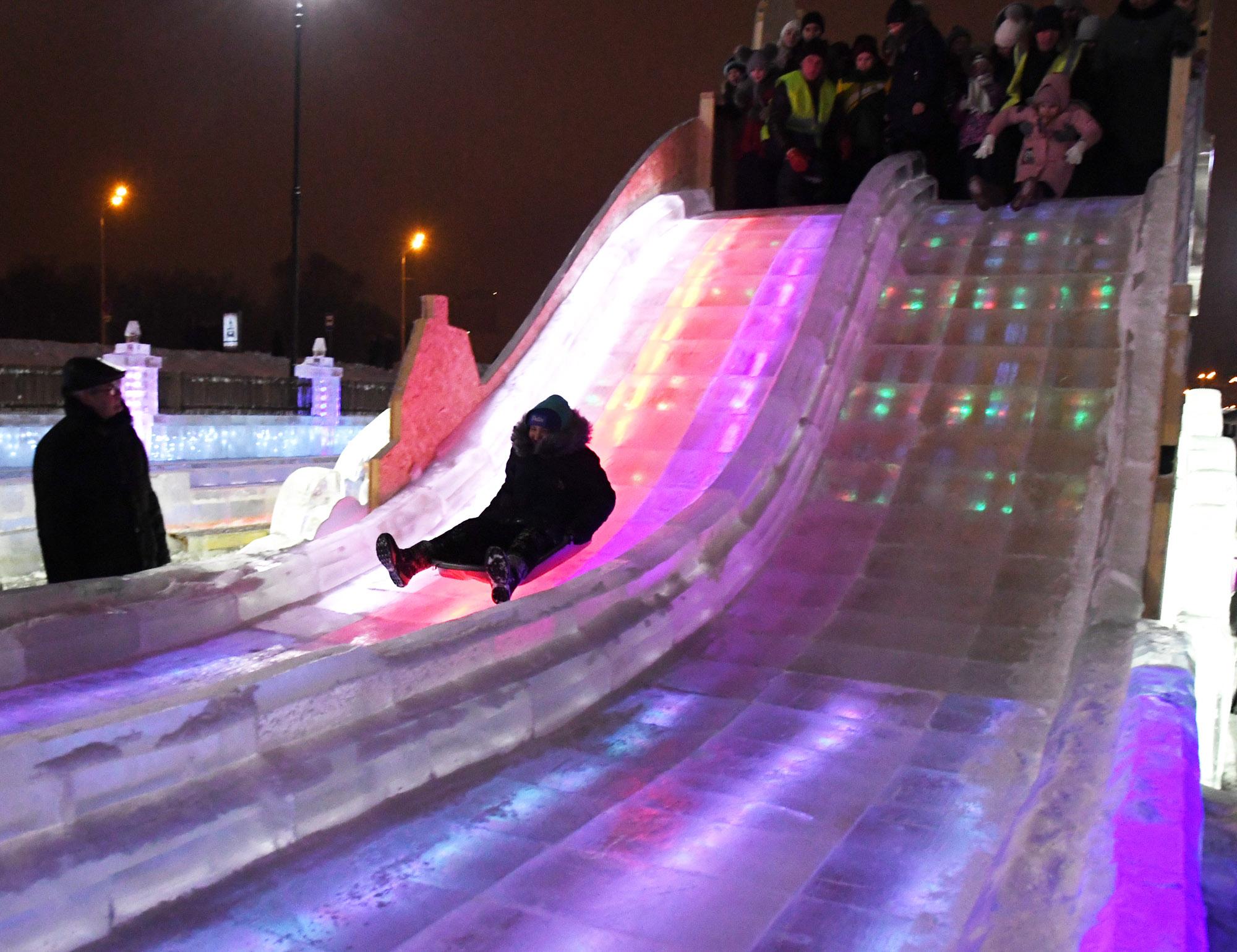 На снимке — ледяная горка, установленная у Чаши в 2018 году