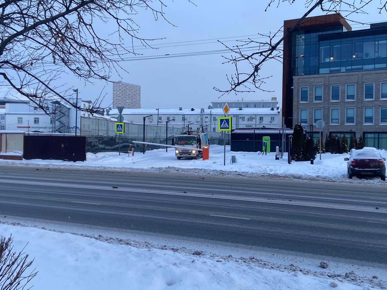 На улице Пушкина уже работала техника для уборки снега.