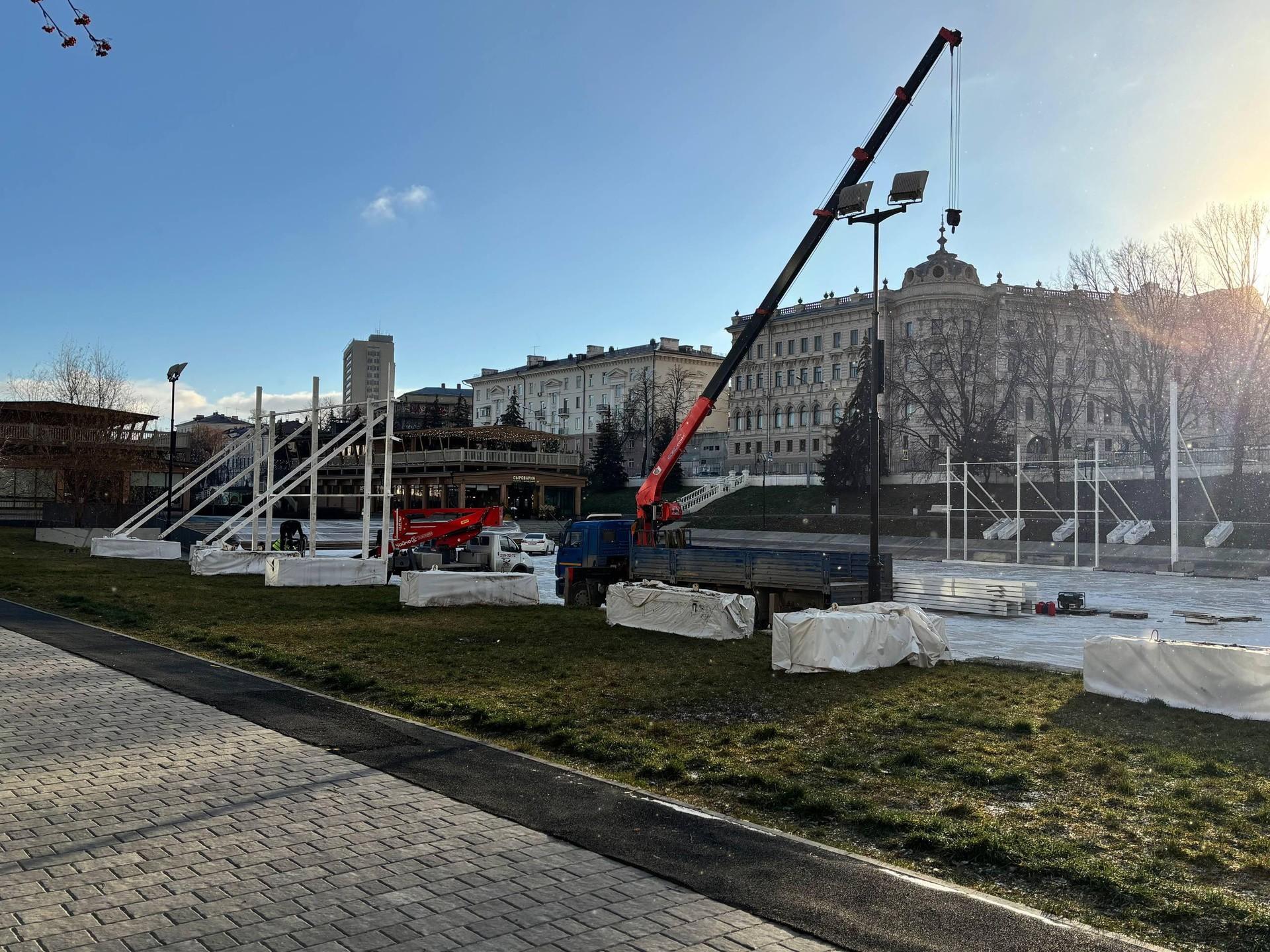 Парк «Черное озеро» в процессе украшения к Новому году.