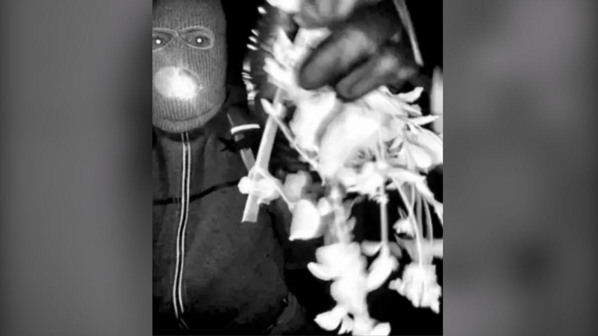 На восстановленном видео потенциальный подозреваемый изображён в лыжной маске с прорезями для глаз и рта, в тяжёлых перчатках, с кобурой для пистолета на поясе. Он несёт полный застёгнутый рюкзак.