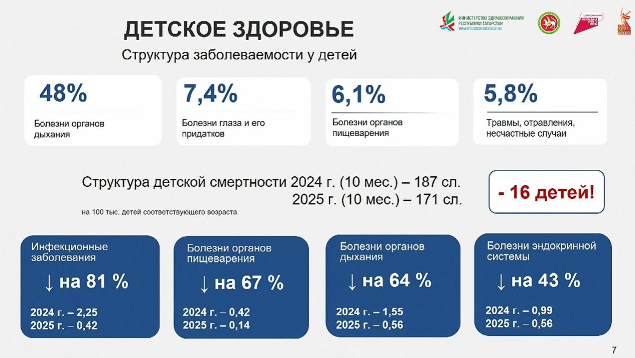 Альмир Абашев также отметил устойчивую тенденцию к ежегодному снижению детской смертности. На сегодняшний день основной причиной гибели несовершеннолетних становятся не болезни, а внешние факторы, такие как несчастные случаи.