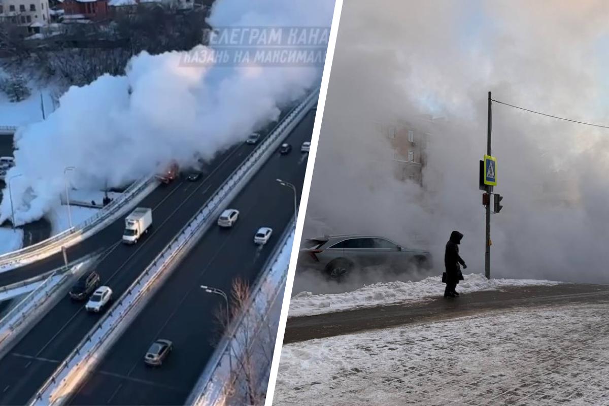 Центр Казани окутан паром после аварии на теплосетях