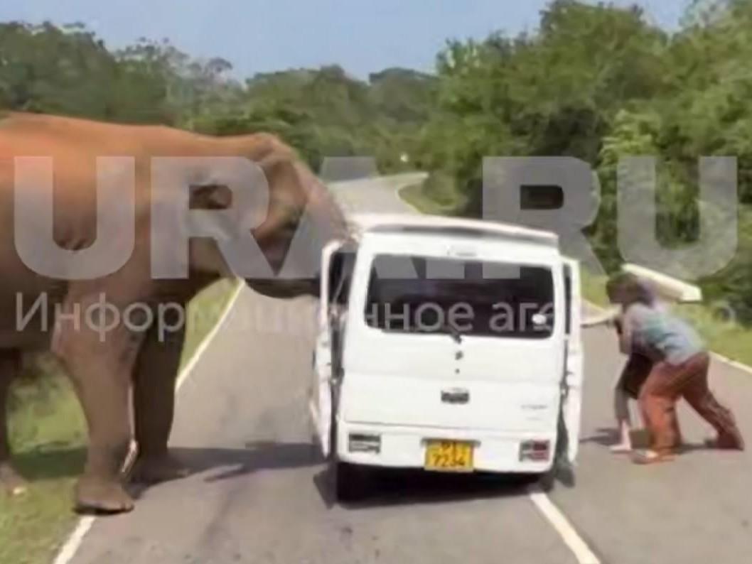 Дикий слон совершил нападение на автомобиль, в котором находились туристы из Казани. Происшествие случилось на Шри-Ланке и было записано на видео.