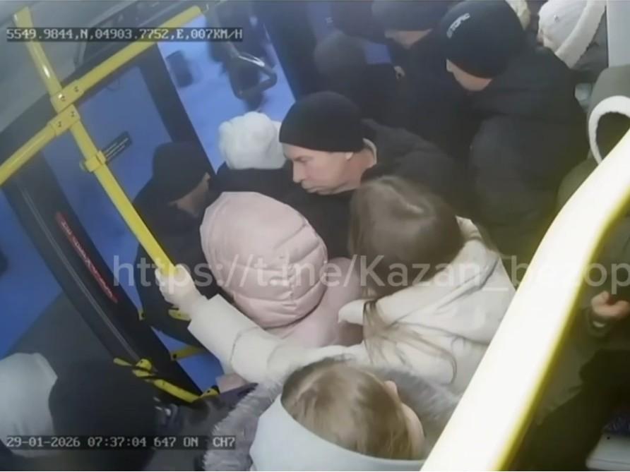 В Казани произошёл инцидент, в ходе которого два пассажира выпали из салона автобуса во время движения. Запись происшествия обнародовала Госавтоинспекция города.