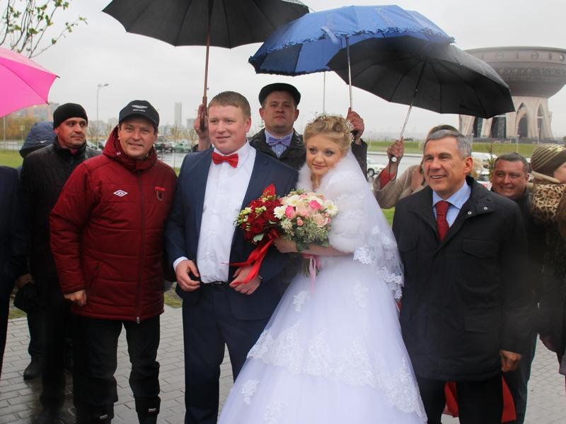 Александр Голяков на фотографии с мэром Казани Ильсуром Метшиным. Чиновник вместе с женой в 2014 году участвовал в акции по посадке деревьев у центра семьи «Казан».