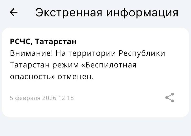 Накануне, 4 февраля, режим опасности в Татарстане действовал с 11:46 до 14:09.
