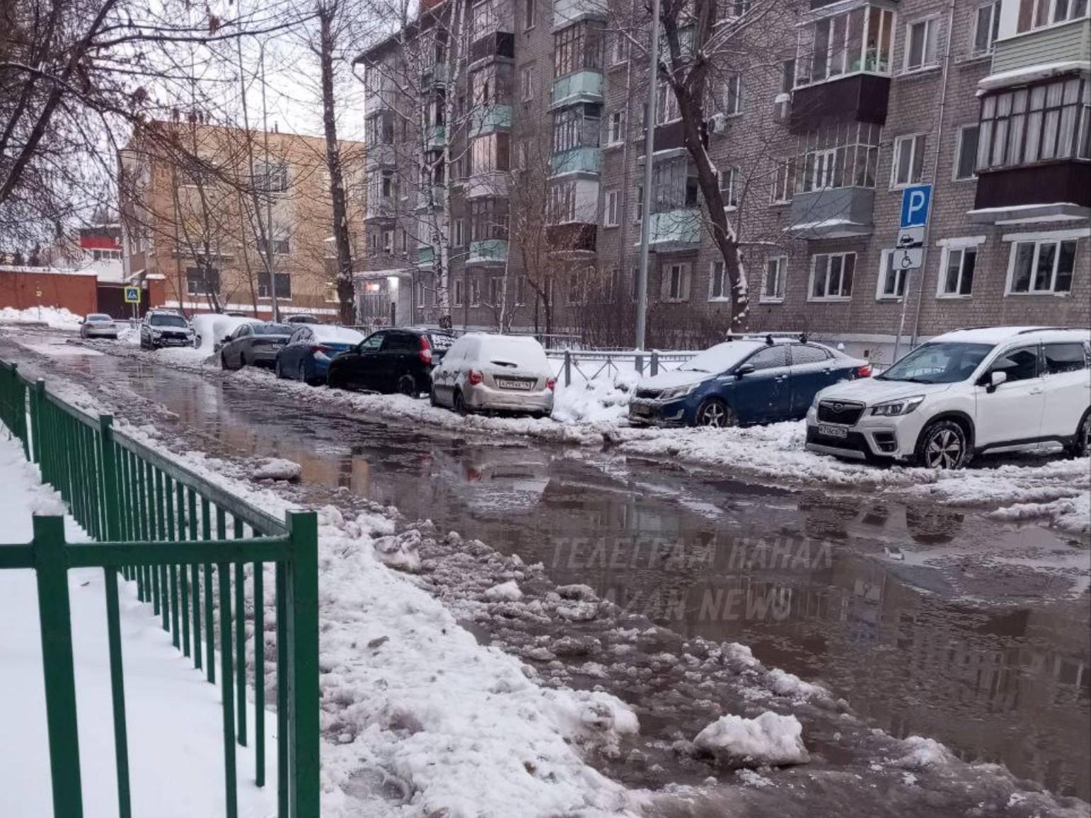 Улицу Гагарина в Казани затопило из-за аварии на водопроводе