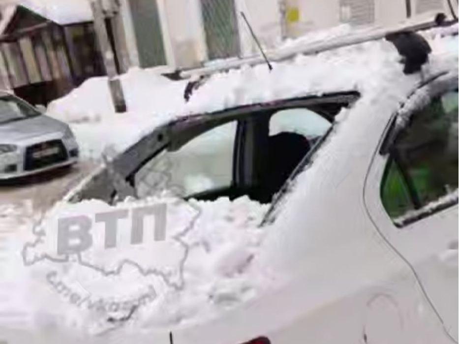 В Казани снежная глыба рухнула на машину, УК накажут