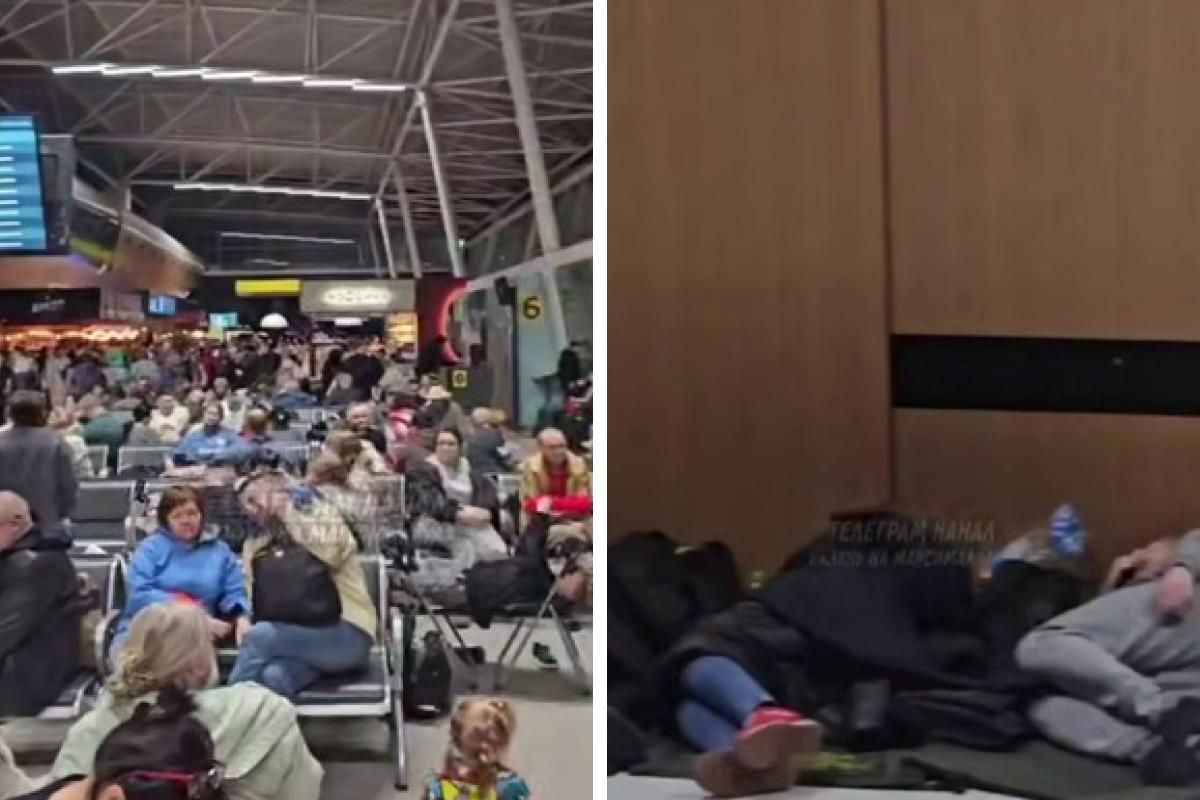 Очевидцы отмечают, что ночью аэропорт Казани был переполнен, и многим пришлось спать прямо на полу.