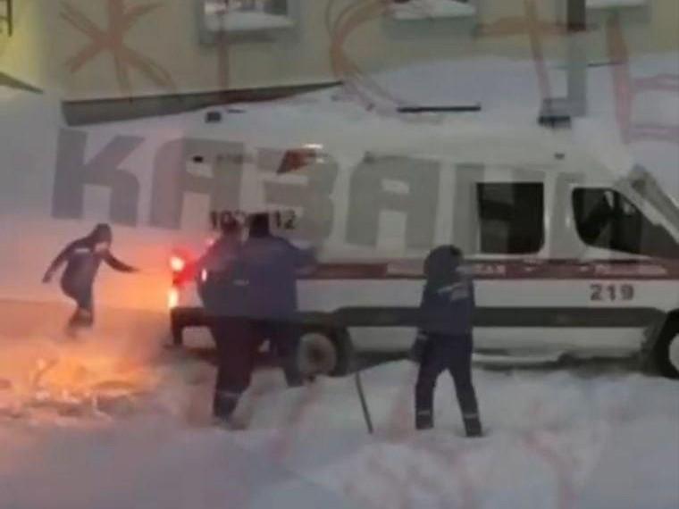 В интернете распространился видеоролик, запечатлевший, как четверо мужчин на территории Зеленодольской центральной городской больницы вручную освобождают из снежного плена машину скорой помощи. Автор публикации сопроводил видео комментарием о том, что выезд медицинского транспорта затруднён из-за неубранных территорий и нехватки техники.