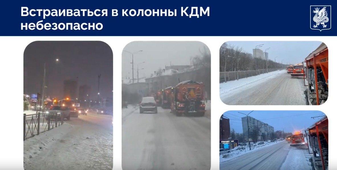 Шайнуров пояснил: «Автомобилисты просто не дают колоннам КДМ (комбинированных дорожных машин) проехать по дороге. Они встраиваются в середину, вероятно, надеясь быстрее проехать, но на деле сами же создают для себя опасность — такую машину за КДМ практически не видно».